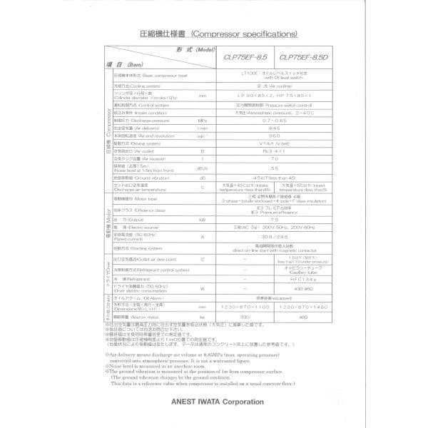 形 式: CLP75EF-8.5 M5 50hz*ドライヤーは、搭載されておりません。