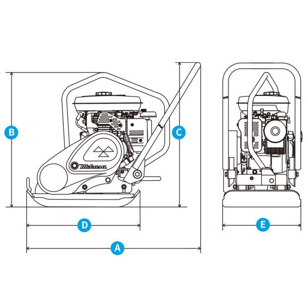 積み込み・積み降ろし作業を楽に行える一点吊りフックを標準装備。 耐久性に優れた特殊ダクタイル製の転圧盤を採用。 内部のオイルを循環させて耐久性を向上した起振体システム(特許取得済)。 【三笠産業 MVC-40HW プレートコンパクター ダブルクリーナー 通常ハンドル 】 機体寸法 (mm):A 865 B 610 C 820 転圧盤寸法(mm):D 420 E 298 機械質量(kg):49 振動数(Hz/v.p.m):103/6,200 遠心力(kN/kgf):7.2/730 最大速度(m/min):25 最大作業勾配(%/度) :35/20 エンジン :型式 GX100 ホンダ 最大出力 2.1/2.9 ■写真は、イメージです。 メーカーホームページはこちらから三笠産業株式会社 ※仕様は予告なく変更になることがございます。 ※下記注意事項の確認をお願いいたします。